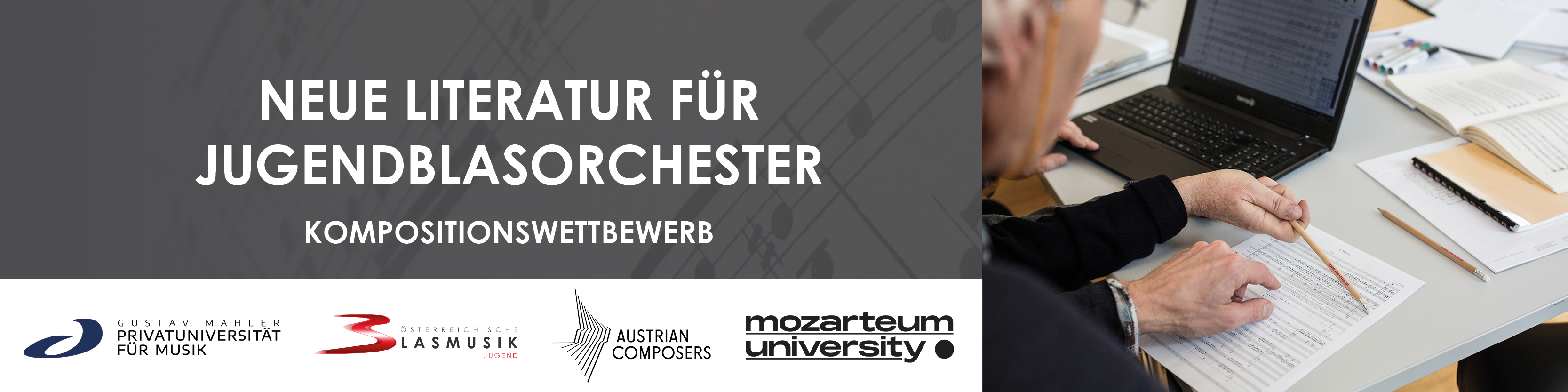 Kompositionswettbewerb zur Bereicherung des Originalrepertoires für Jugendblasorchester im Bereich Marschmusik.