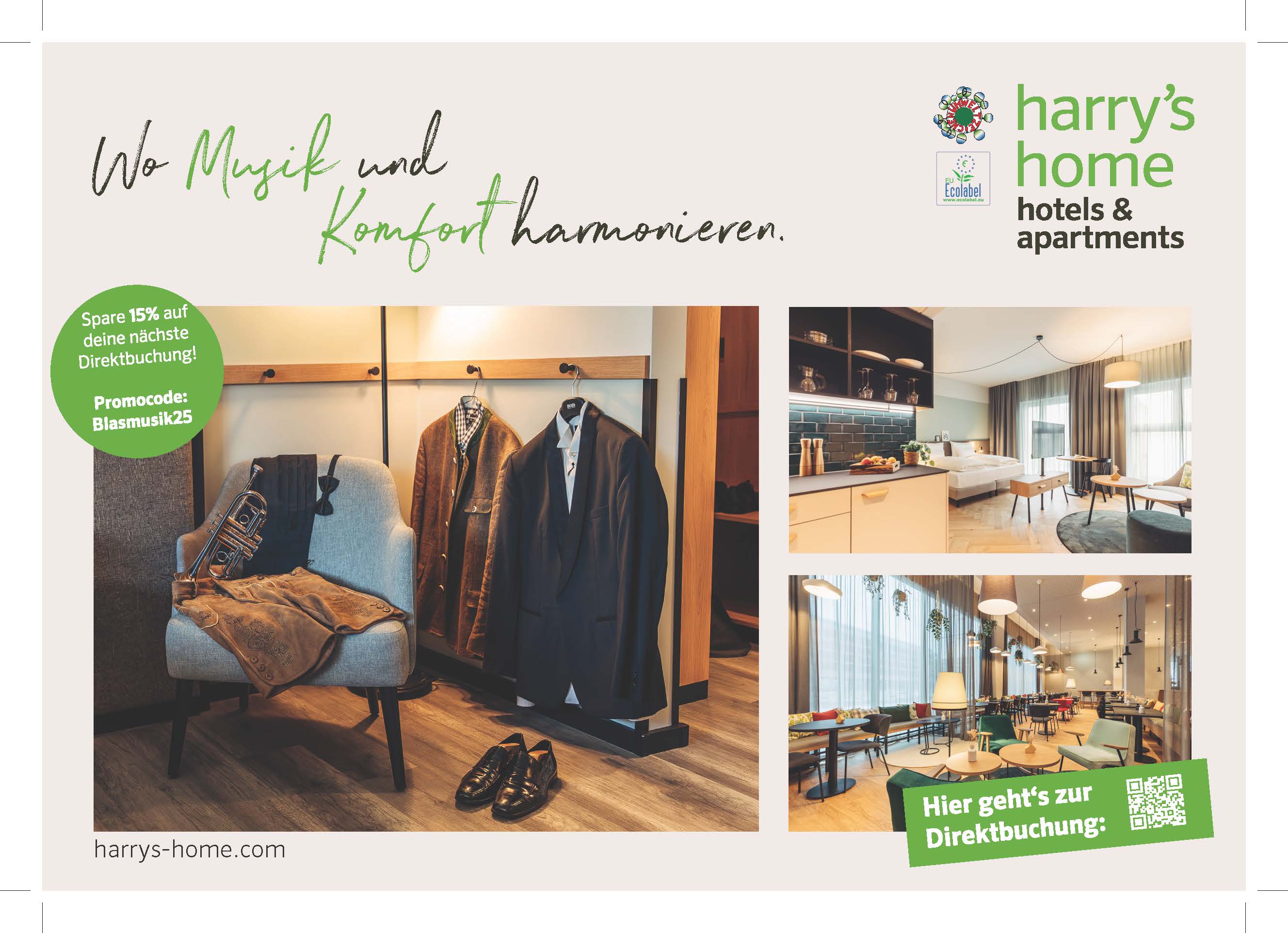 ÖBV-Mitglieder können nun 15% auf die nächste Direktbuchung bei harry's home sparen.